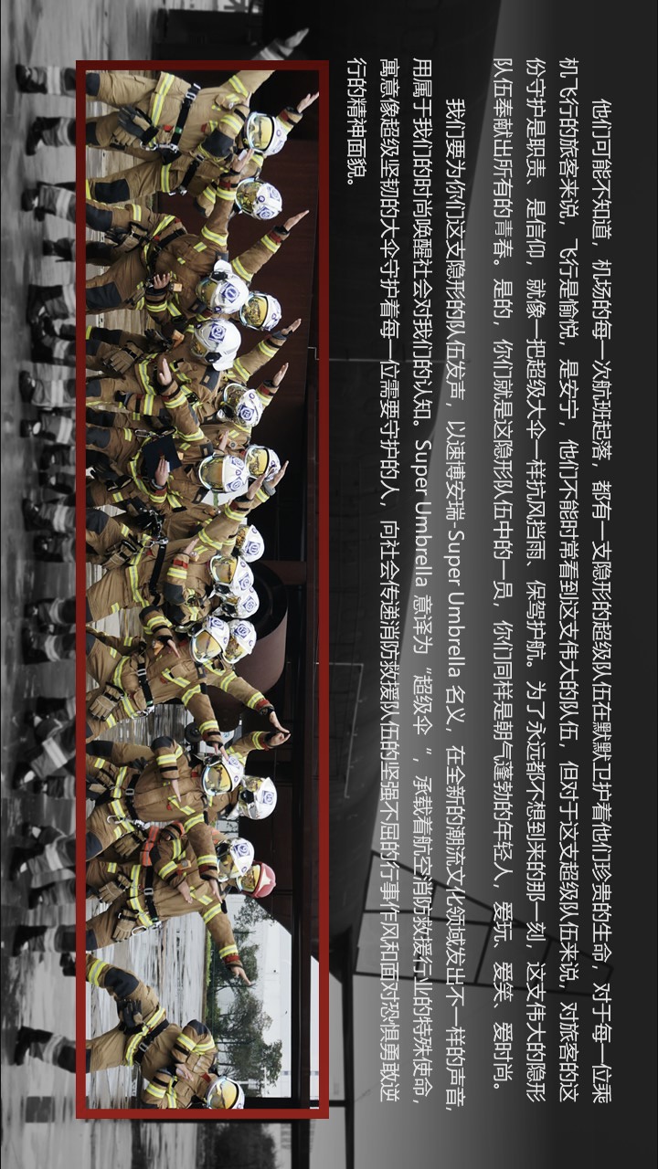 11月19日全國消防日,我們要為你們這支隱形的隊伍發(fā)聲,以速博安瑞Super Umbrella名義,在全新的潮流文化領(lǐng)域發(fā)出不一樣的聲音,用屬于你們時尚喚醒社會對你們的認(rèn)知!