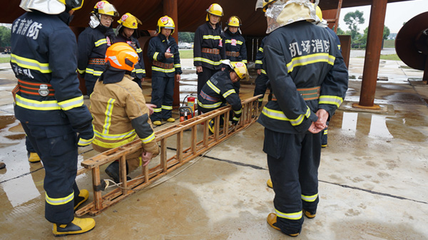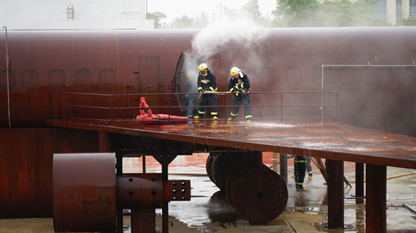 考核內(nèi)容涉及航空器引擎火、地面流淌火、機(jī)艙內(nèi)部火災(zāi)、艙內(nèi)人員搜救等培訓(xùn)期間所學(xué)內(nèi)容