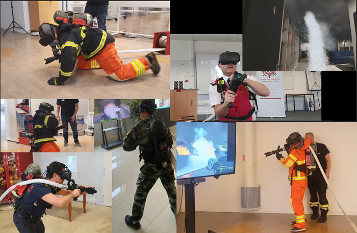 全感觀VR消防訓(xùn)練系統(tǒng)是專門為實現(xiàn)消防員非現(xiàn)場作戰(zhàn)訓(xùn)練而開發(fā)的系統(tǒng)。由VR頭盔、具備后坐力的水槍、卷盤水帶、氣瓶空呼、發(fā)熱背心等一整套先進的設(shè)備組裝而成,參訓(xùn)人員佩戴的頭盔是實現(xiàn)豐富訓(xùn)練畫面的VR設(shè)備,植入了多種火災(zāi)場景,整套系統(tǒng)是目前全球范圍內(nèi)沉浸感最強,體感維度最全面的產(chǎn)品,視覺、聽覺、呼吸、溫度、操控等均有體現(xiàn),可提供史無前例的真實感觀體驗,有效提高參訓(xùn)人員滅火救援技能。