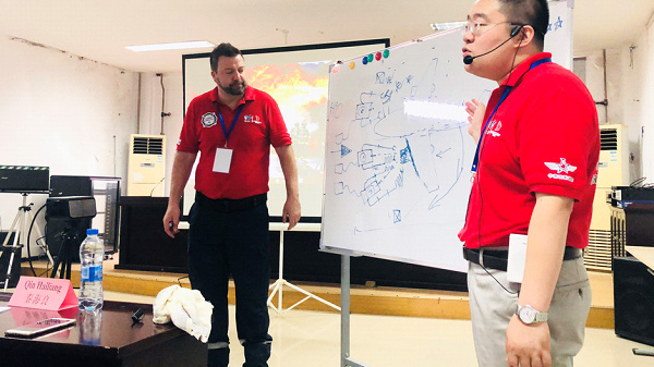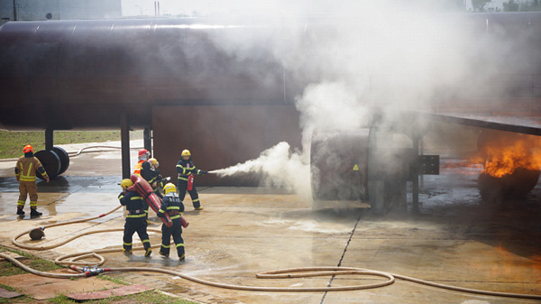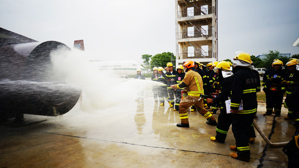 考核內(nèi)容涉及航空器引擎火、地面流淌火、機(jī)艙內(nèi)部火災(zāi)、艙內(nèi)人員搜救等培訓(xùn)期間所學(xué)內(nèi)容