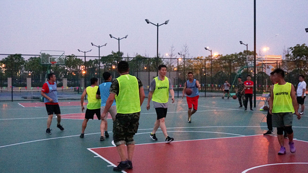 課余,學(xué)員隊(duì)與助教隊(duì)經(jīng)行了一場激烈的籃球賽