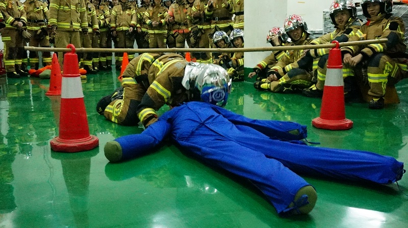 為了鞏固學(xué)員當(dāng)天所學(xué)實(shí)操技能同時(shí)也增加培訓(xùn)的趣味性,特意設(shè)置了豐富多彩的比賽項(xiàng)目,例如艙外水帶鋪設(shè)及擊打錐桶比賽、艙內(nèi)水帶延展比賽、營(yíng)救假人比賽等等。
