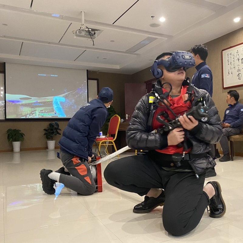 除VR頭盔,學(xué)員還需要佩戴“空呼”和“氣瓶”,穿戴內(nèi)置智能加熱裝置的背心,
