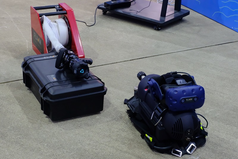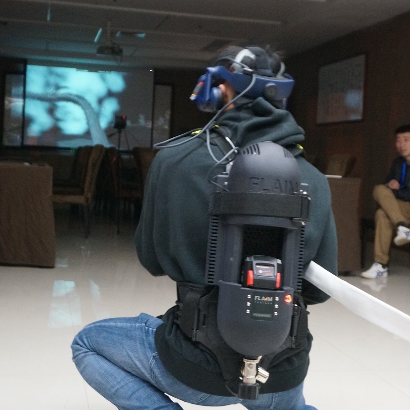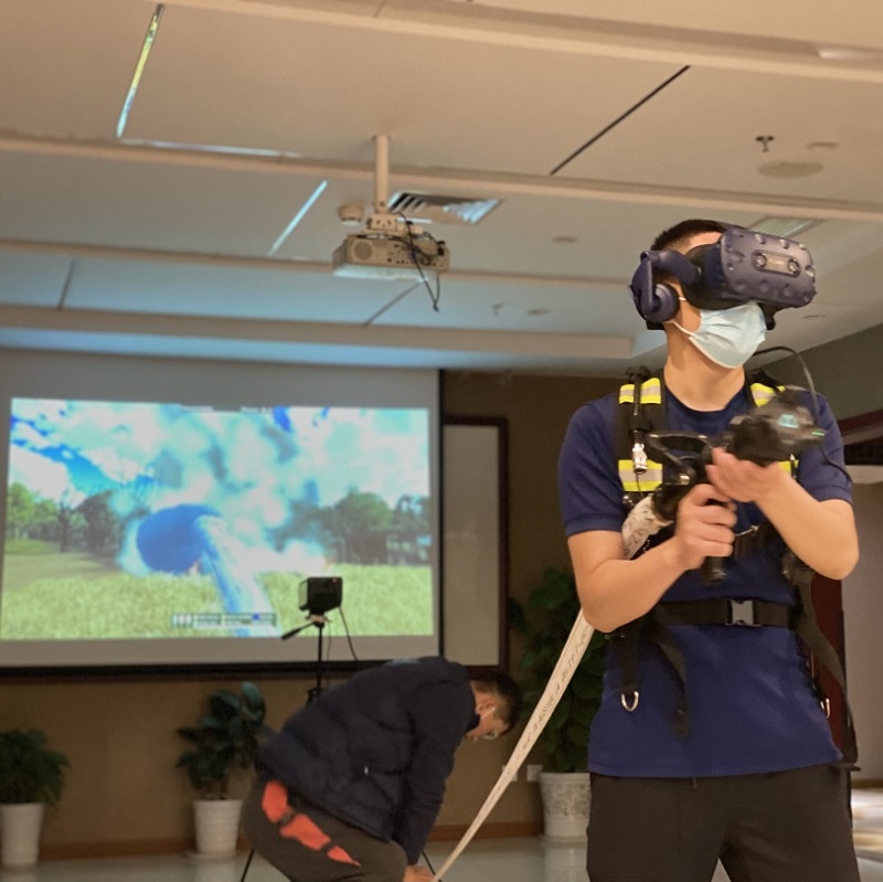 全感觀VR消防訓(xùn)練系統(tǒng)是專門為實現(xiàn)消防員非現(xiàn)場作戰(zhàn)訓(xùn)練而開發(fā)的系統(tǒng)。由VR頭盔、具備后坐力的水槍、卷盤水帶、氣瓶空呼、發(fā)熱背心等一整套先進的設(shè)備組裝而成,參訓(xùn)人員佩戴的頭盔是實現(xiàn)豐富訓(xùn)練畫面的VR設(shè)備,植入了多種火災(zāi)場景,整套系統(tǒng)是目前全球范圍內(nèi)沉浸感最強,體感維度最全面的產(chǎn)品,視覺、聽覺、呼吸、溫度、操控等均有體現(xiàn),可提供史無前例的真實感觀體驗,有效提高參訓(xùn)人員滅火救援技能。